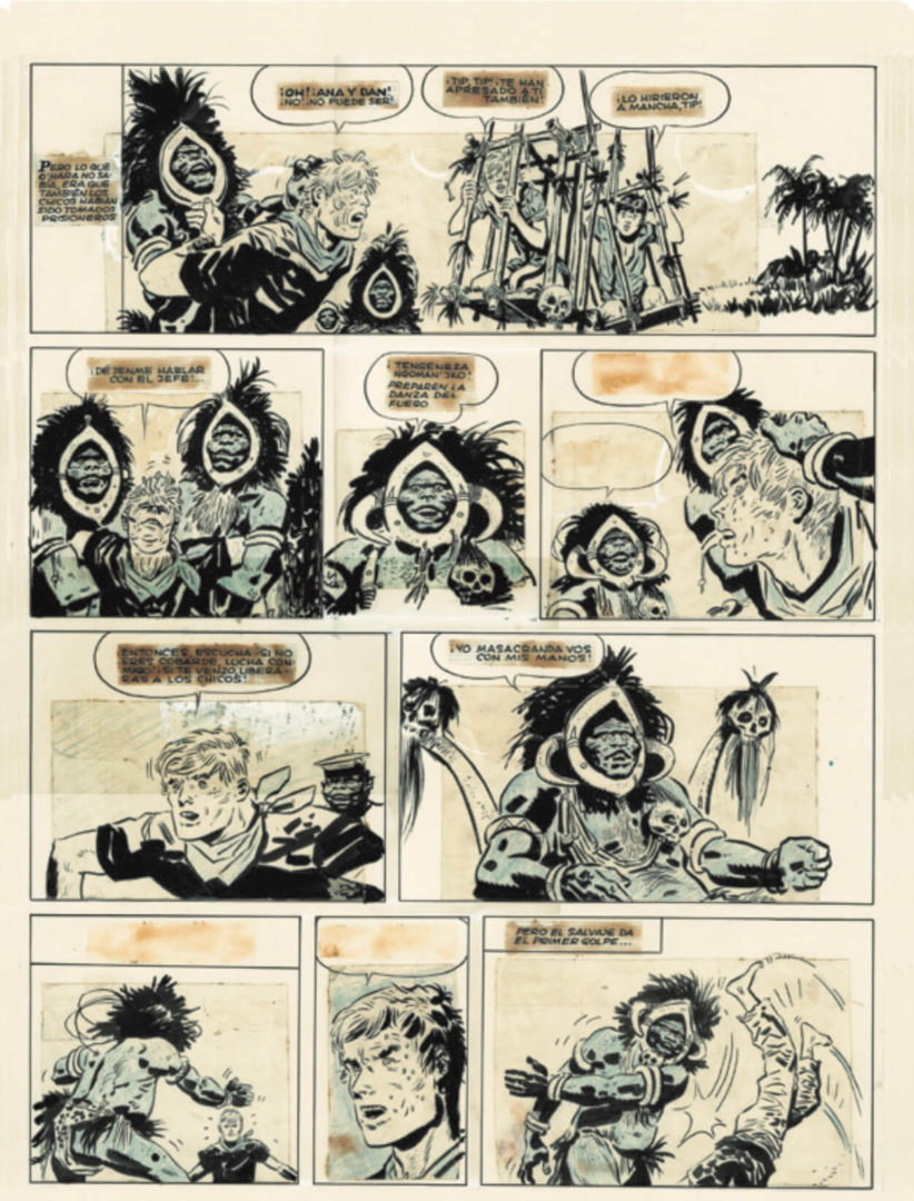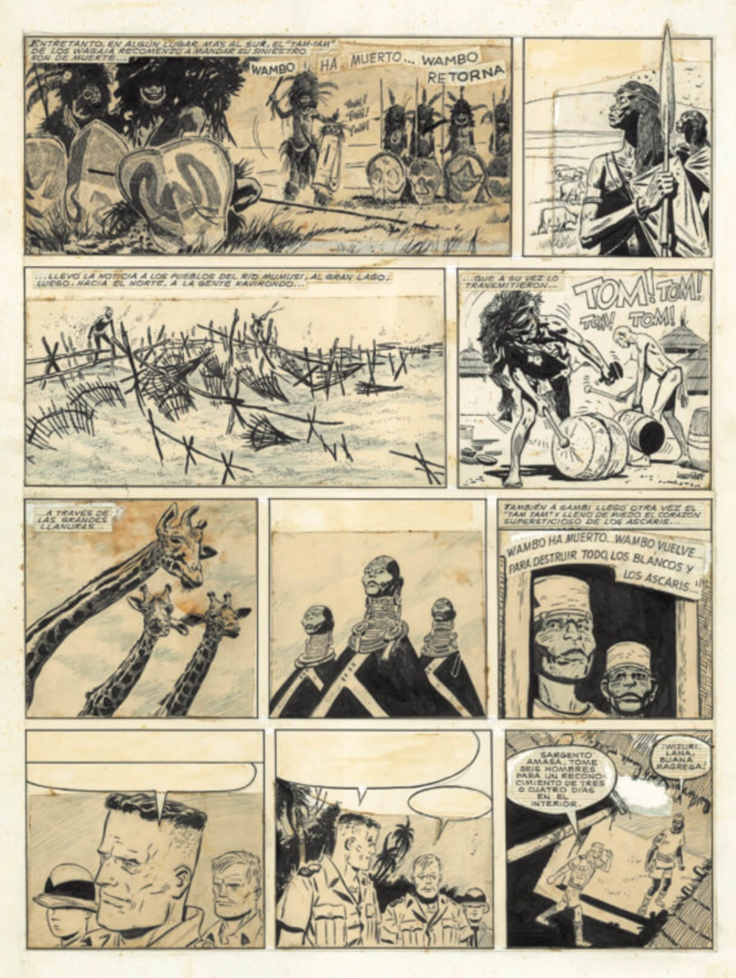 Il percorso si apre sulle origini veneziane e sui primi lavori, quando Pratt muove i suoi passi nel fumetto con L’Asso di Picche, già segnato da un immaginario internazionale e dall’influenza del fumetto americano. Da qui la mostra si espande verso l’Argentina degli anni Cinquanta, con le tavole di Sgt. Kirk ed Ernie Pike e il loro linguaggio fatto di contrasti netti e ritmo narrativo.