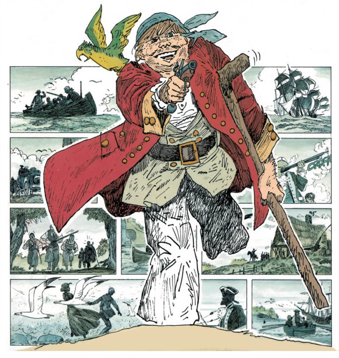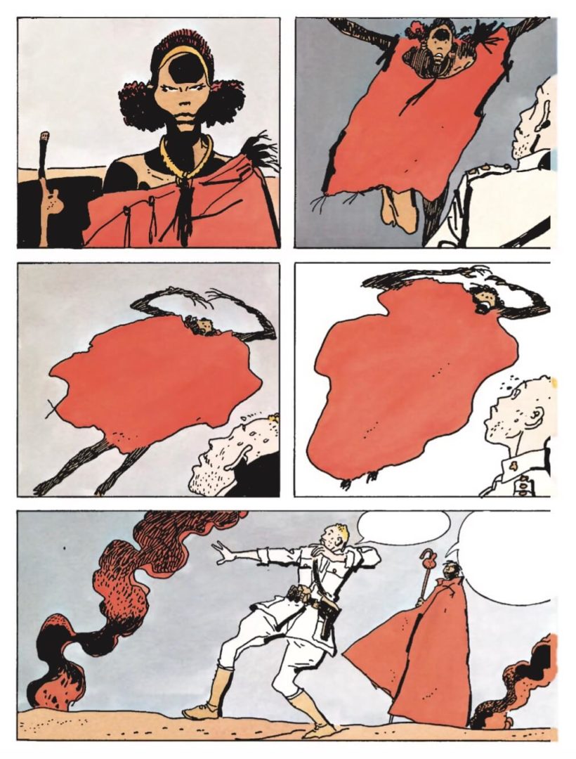 Le sezioni centrali attraversano i luoghi che hanno inciso più profondamente nella sua opera: l’Africa dell’adolescenza, che ritorna nelle storie degli Scorpioni del deserto e nelle Etiopiche, e l’Europa degli anni Sessanta, tra Londra e l’Italia, con i lavori che passano da Wheeling alle storie realizzate per il Corriere dei Piccoli, come Ulisse, Simbad (di recente ripubblicati da Cong Edizioni) e L’isola del tesoro.