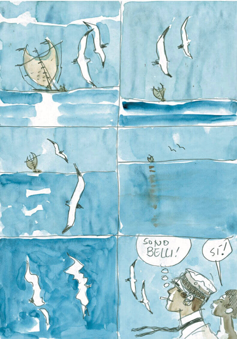 More than 330 colour and black and white pictures, watercolours, original plates, albums and period material. To close, the volume gives readers a complete Corto Maltese adventure, A Mid-Winter Morning’s Dream, with new colouring by Patrizia Zanotti.